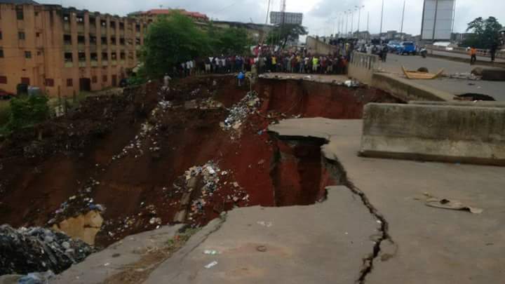 A section of Mkpor road almost cut off by erosion