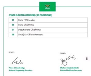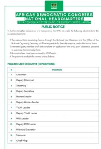 (DDM) – The African Democratic Congress (ADC) has officially released its comprehensive party structure, covering executive positions from the polling unit level to the state level.