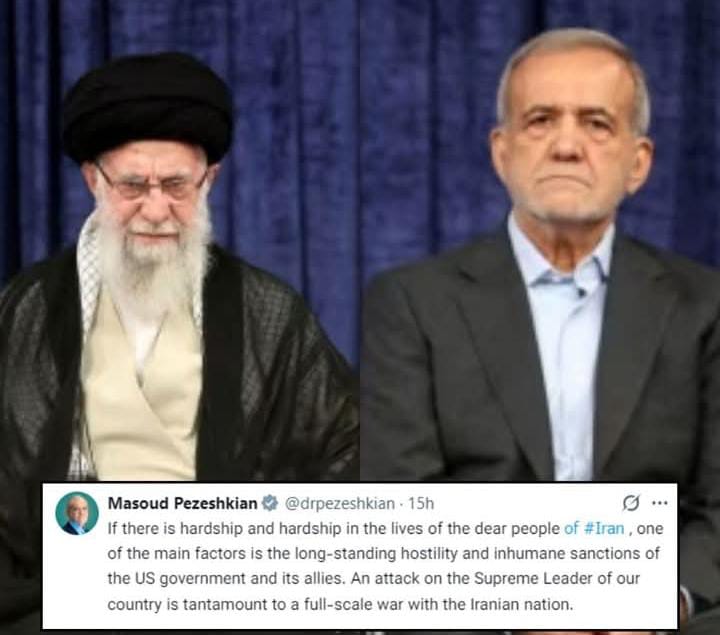 Pezeshkian delivered the warning through a strongly worded message shared on the social media platform X, making it clear that Iran considers its Supreme Leader untouchable and that any threat to his life would be treated as a direct act of war against the Iranian state.