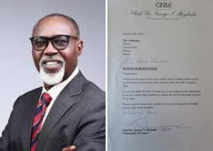 (DDM) – Chief George Moghalu, a prominent political figure and former governorship candidate, has officially resigned from the Labour Party.