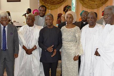 Three former heads of states/presidents and three former number twos joined Vice President Yemi Osinbajo, SAN, today to show gratitude to God, offering thanksgiving for his goodness over Nigeria.