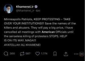 In a moment that reflects the deepening complexities of global political communication, the Supreme Leader of the Islamic Republic of Iran, Ayatollah Ali Khamenei, issued a public message addressed to the American people at a time of intense unrest in the United States, particularly in Minneapolis, Minnesota. The message, shared on social media, called on Americans to protest and exert pressure on U.S. institutions. While the tone and intent of the message drew strong reactions internationally, analysts say its timing and context are significant, coming amid profound anger and grief in American streets following a fatal shooting by federal immigration agents.