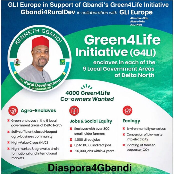 The program, branded as Gbandi4RuralDev, aims to establish green agro-enclaves across the nine local government areas of Delta North, targeting sustainable agriculture, job creation, and environmental protection. Organizers are calling on 4,000 co-owners to participate in the initiative.