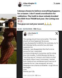 Her apology has since drawn mixed reactions from fans and industry observers. While some commended her for taking accountability and showing maturity, others viewed the situation as a reminder of the pressures actors face in a highly competitive industry where validation often comes in the form of awards and public recognition.