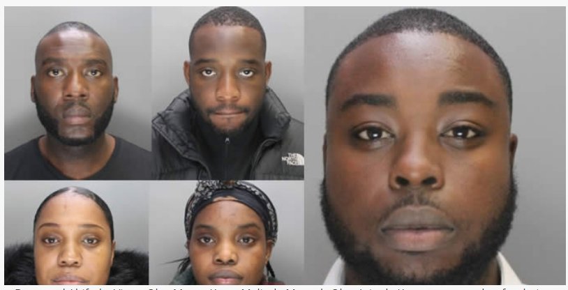 A London Court has sentenced five Nigerians to various jail terms over the theft of £610,000 from business bank accounts.