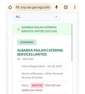 This incident is not isolated. SaharaReporters had earlier reported a similar case involving Swanty 16 Kitchen Enterprise, a company registered on March 15, 2023.