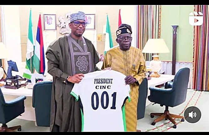 (DDM) – The President of the Nigeria Football Federation (NFF), Ibrahim Musa Gusau, on Thursday paid a courtesy visit to President Bola Ahmed Tinubu at his office in Abuja, where he presented him with a specially customised Super Eagles jersey.