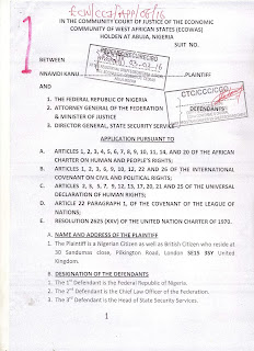 The leader of Indigenous People of Biafra [IPOB], Nnamdi Kanu has dragged the Nigerian government to the ECOWAS Court.