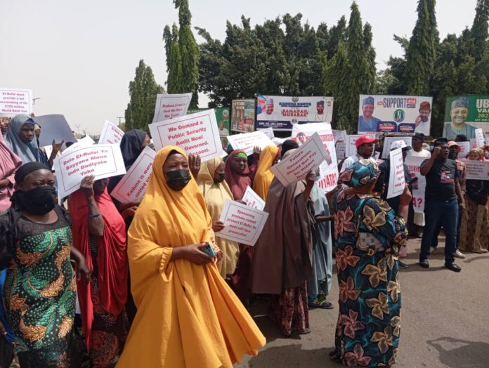 Residents of Kaduna State on Thursday staged a peaceful protest at the Government House, calling for a public audit of former governor Nasir El-Rufai’s administration and demanding answers over the disappearance of Abubakar Idris, widely known as Dadiyata.