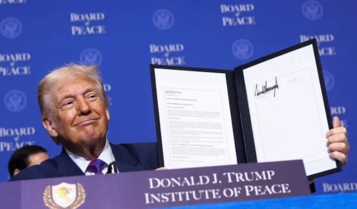 “This is about making the peace stick,” Trump said, positioning the initiative as the mechanism for long-term recovery and security.