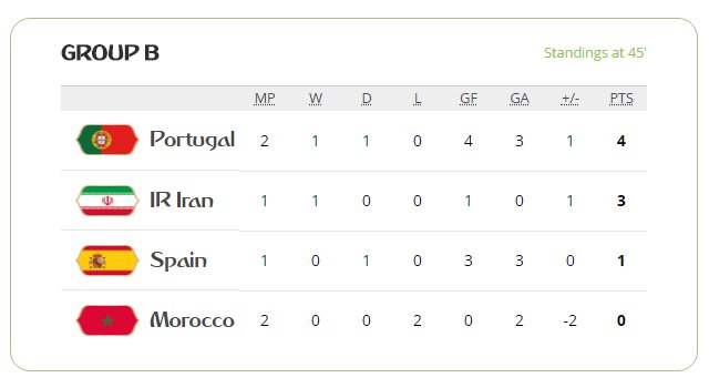 Morocco lost their first match to Iran 0-1, and again lost their second match also 0-1 to Portugal.