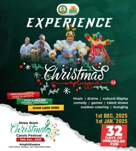 Rounding off the celebrations is the Christmas Unplugged 3.0, a 32-day cultural carnival, running from December 1, 2025, to January 1, 2026, also at the Uyo Amphitheatre.