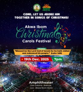 The flagship Akwa Ibom Carols Festival will hold on the evening of Friday, December 19, 2025, at the Uyo Amphitheatre.
