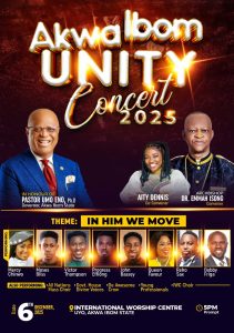 The concert, which has Archbishop Dr. Emmah Isong and Pastor Aity Dennis as Convener and Co-convener respectively, shall feature celebrated gospel artistes like Moses Bliss, Mercy Chinwo, Victor Thompson, the All Nations Mass Choir, Progress John, Bobby Friga, Queen Favour, the Divine Voices Crew, among others.